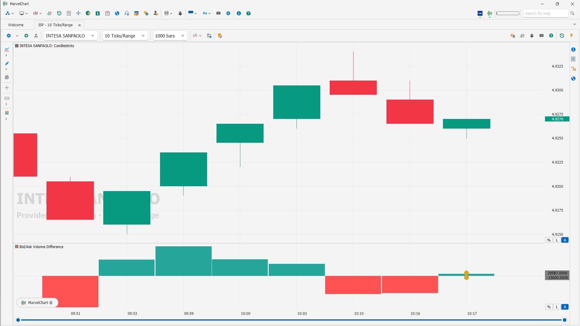 L'indicatore "Ask/Bid Volume Difference Bars" è un indicatore a candela che mostra la dinamica della differenza di volume tra vendita e acquisto durante una barra. Il massimo della candela è il Delta massimo durante una barra, mentre il minimo è il Delta minimo e la chiusura è il Delta effettivo.